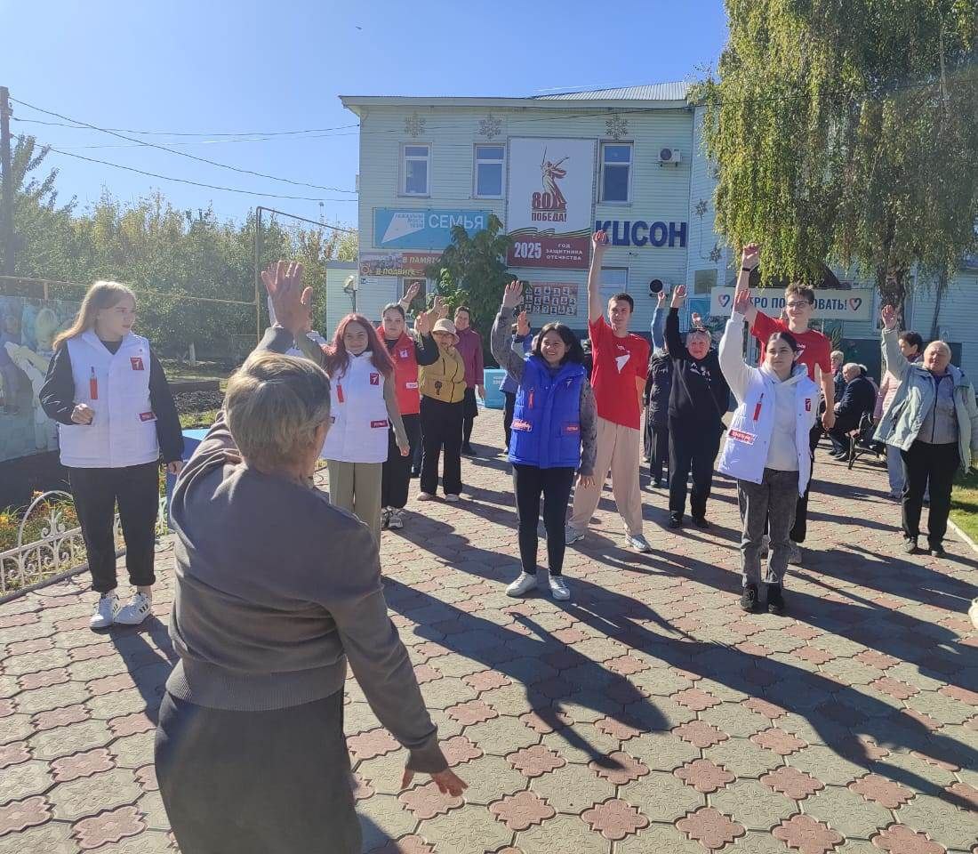 «Серебряный» волонтер Мария Федулкина провела оздоровительную зарядку и спортивные эстафеты.