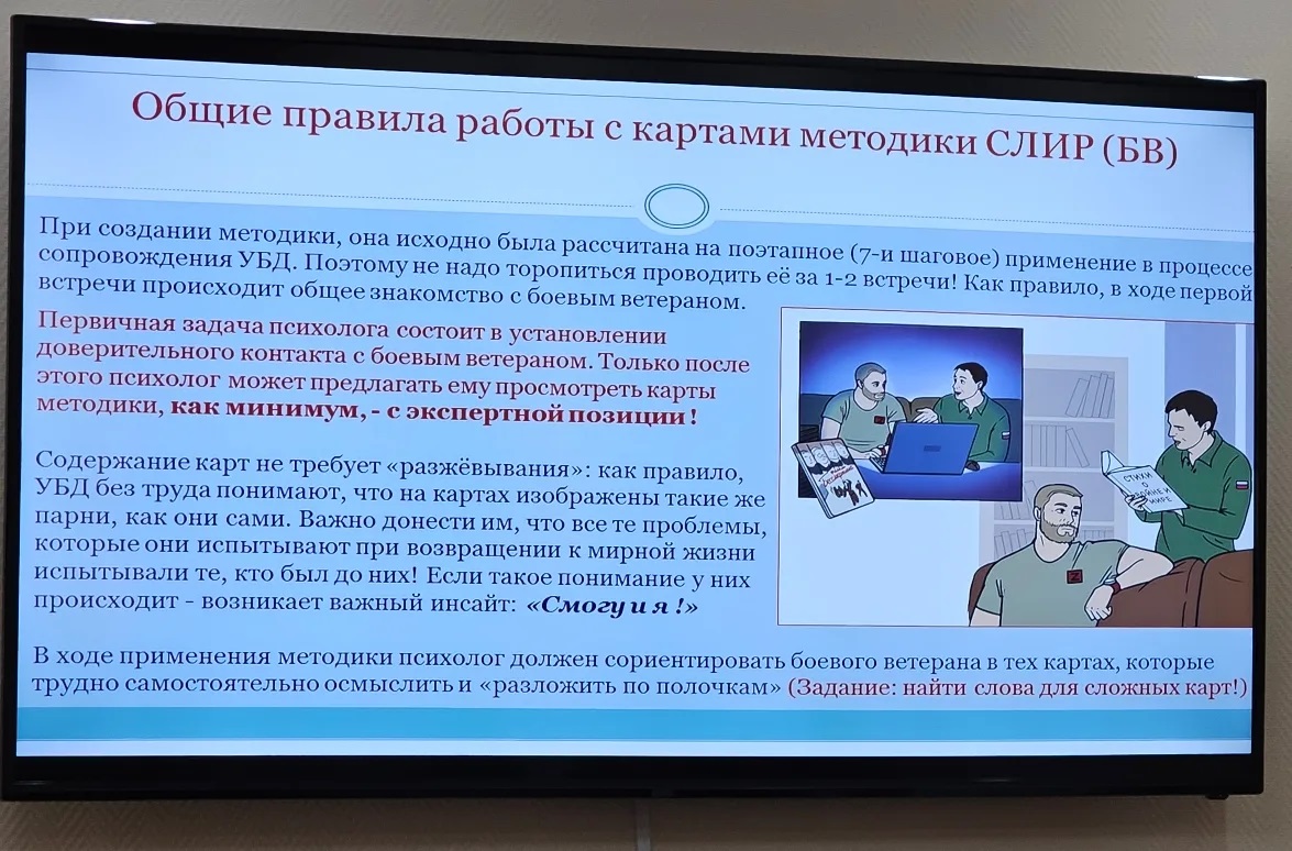 Цель семинара — ознакомление специалистов и социальных работников учреждения с авторской методикой СЛИР, разработанной Геннадием Николаевичем для реадаптации участников СВО и членов их семей.