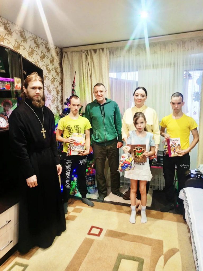 В праздник Рождества священнослужитель Ртищевского благочиния иерей Александр Беляевский, социальный партнер комплексного центра социального обслуживания населения Ртищевского района Николай Мясищев, специалист центра Инна Кравцова поздравили детей, состоящих на социальном патронаже, и их родителей с праздником. Дети получили подарки: книги и рождественские сладости.