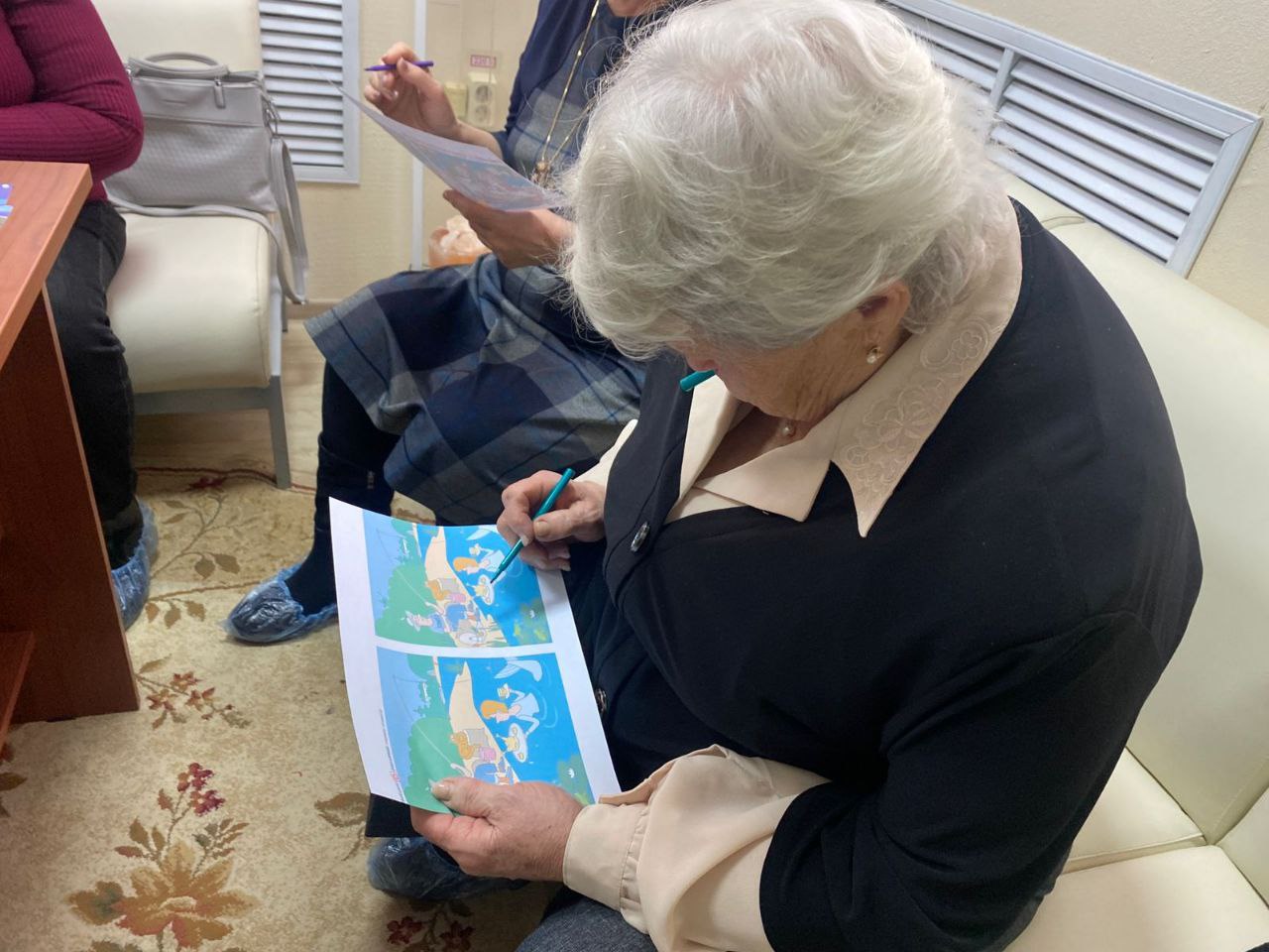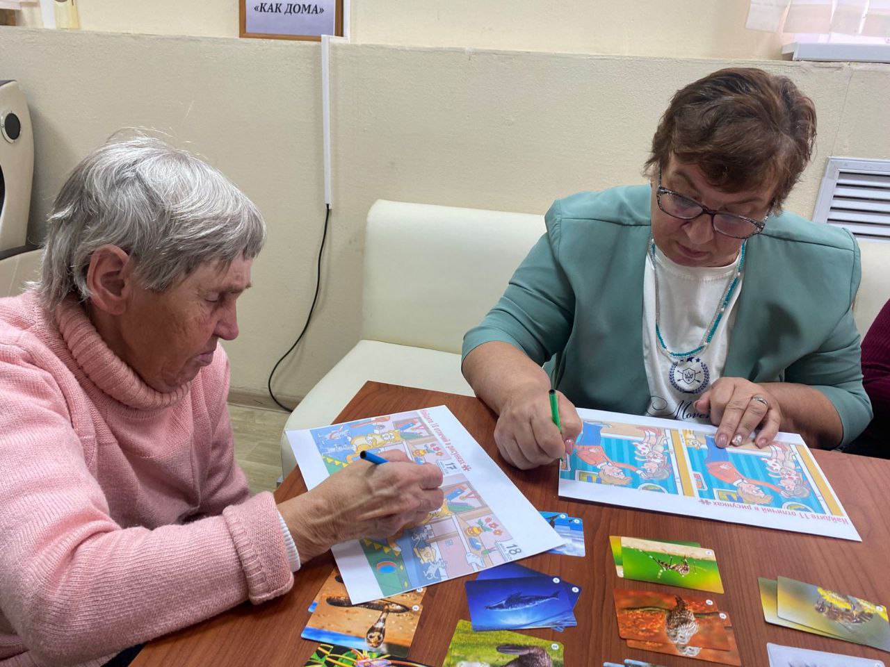 Психолог центра Людмила Шувакина рассказала о доступных активностях, способных сохранить когнитивные функции и на практике закрепила знания с помощью игр «Найди отличия», «Цепочка слов» и «Мемо».