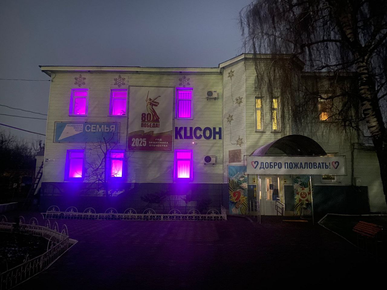 В рамках акции здание центра было подсвечено фиолетовым цветом, символизирующим поддержку семей с недоношенными малышами.