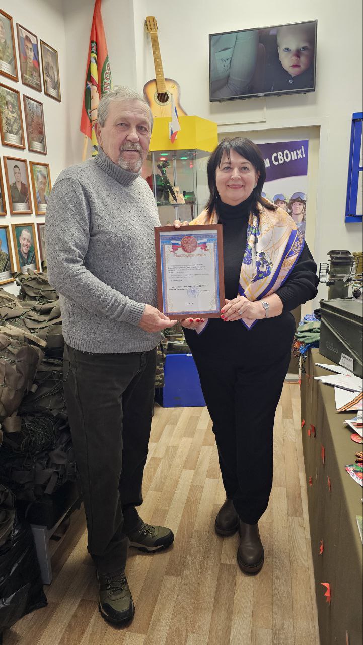 Музей специальной военной операции комплексного центра социального обслуживания населения Ртищевского района пополнился еще одним Благодарственным письмом, привезенным из-за «ленточки».