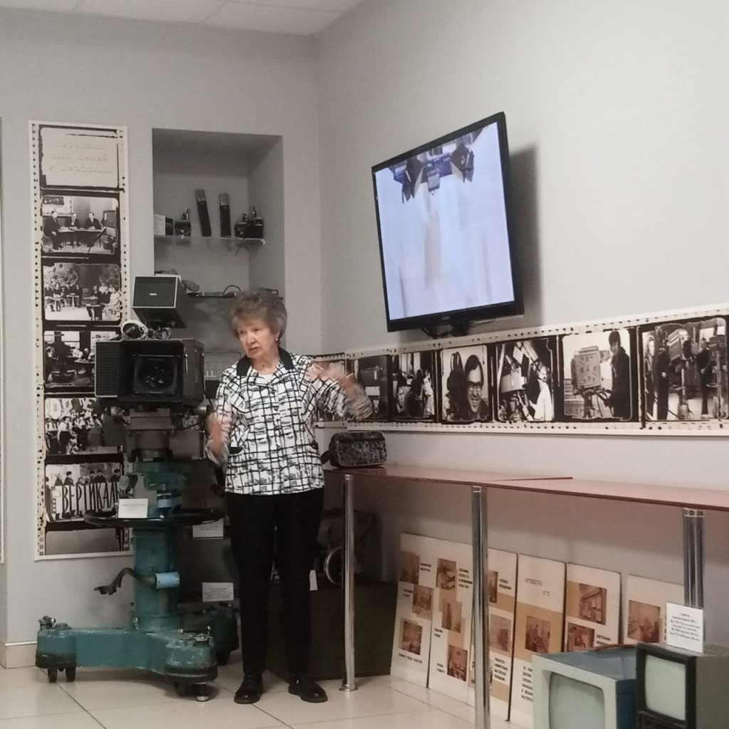 Татьяна Александровна Пашкина, председатель Саратовского городского Совета ветеранов, руководитель музея рассказала об истории развития Саратовского телевидения и радиовещания, показала действующие эфирные и съёмочные студии ГТРК «Саратов».