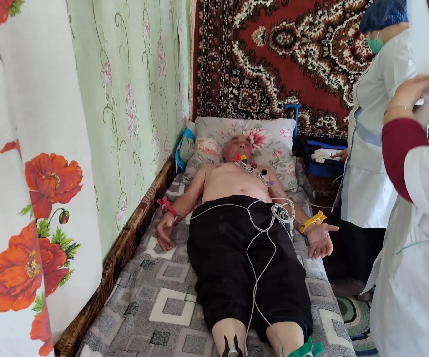 Для тех, кому сложно передвигаться самостоятельно, врачи провели осмотр прямо на дому: сделали электрокардиограмму (ЭКГ), измерили артериальное давление и взяли необходимые лабораторные анализы.