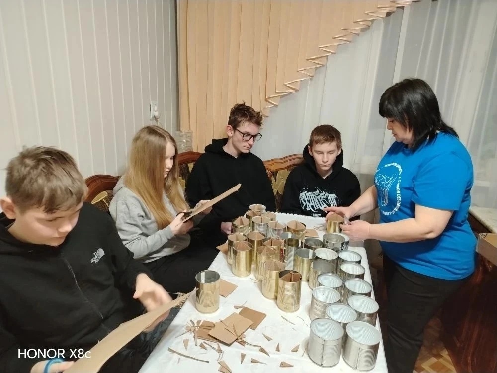 Социальный работник комплексного центра Наталья Здобнова провела для местных школьников душевный мастер-класс по созданию окопных свечей