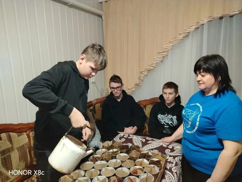 В минувшее воскресенье, 1 февраля 2026 г., социальный работник комплексного центра социального обслуживания населения Ртищевского района, член районного Совета женщин Наталья Здобнова из пос. Темп провела для местных школьников душевный мастер-класс по созданию окопных свечей.