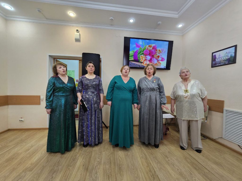 В зале присутствовали матери героев, погибших в специальной военной операции, жены и матери ребят, которые сегодня стоят на защите нашей Родины «серебряные» волонтеры, получатели услуг комплексного центра. Цветы и подарки, подготовленные школьниками, были вручены женщинам. А фотография на память будет храниться в альбоме, напоминая о празднике.