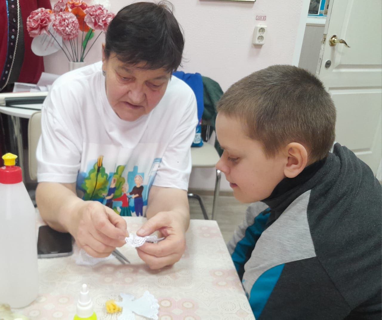 «Серебряный» волонтер Людмила Акилина провела мастер-класс по изготовлению объемной открытки «Сердце маме» для детей из семей состоящих на социальном обслуживании.