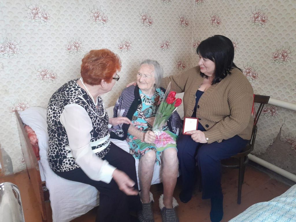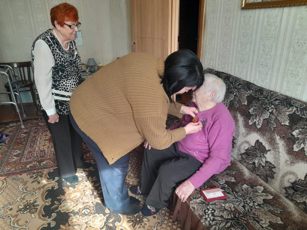 В преддверии праздника 8 марта директор комплексного центра социального обслуживания населения Ртищевского района, председатель районного Совета женщин Ольга Ивановна Гордина вручила ветеранам Великой Отечественной войны — Рыжовой Марии Егоровне, Серебряковой Марии Герасимовне, Чуканову Николаю Федоровичу юбилейные медали «80 лет Победы в Великой Отечественной войне 1941-1945 г.г.».
