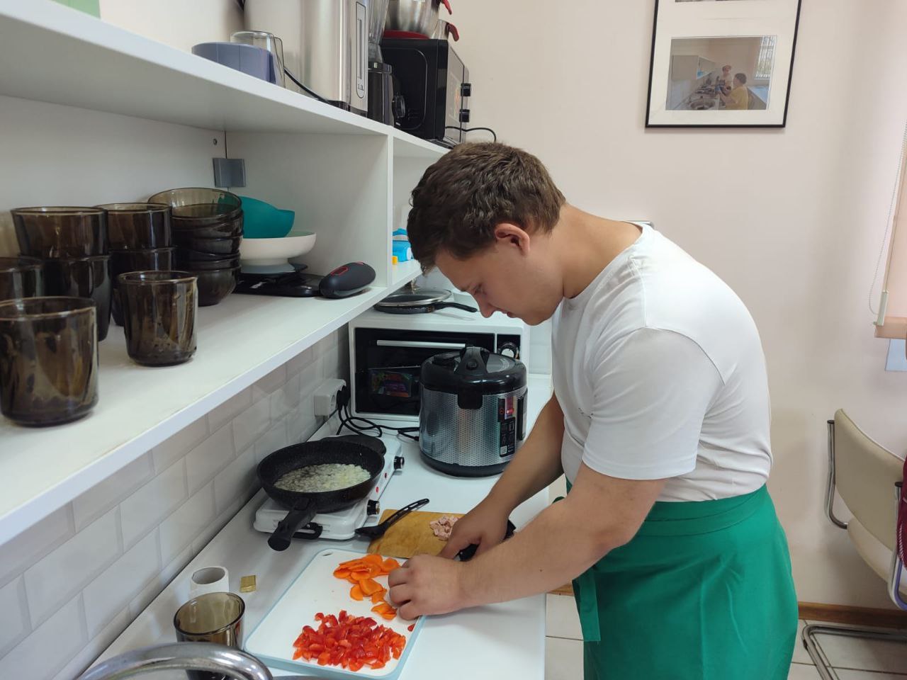 Специалисты и «серебряные» волонтеры центра учат молодых людей не только готовить еду, но и осваивать специальное оборудование учебной кухни.