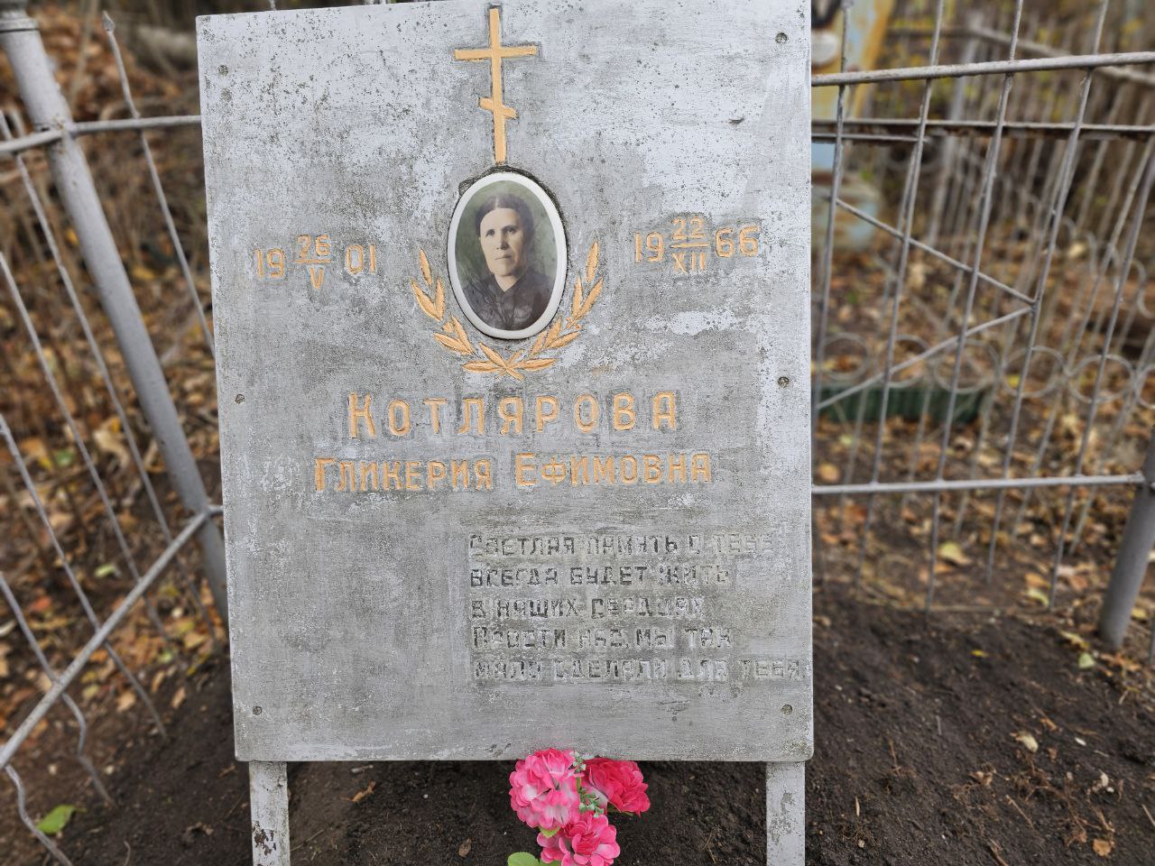 Это захоронение 1966 г., в котором покоится Гликерия Котлярова, мать Митрополита Санкт-Петербургского и Ладожского Владимира.