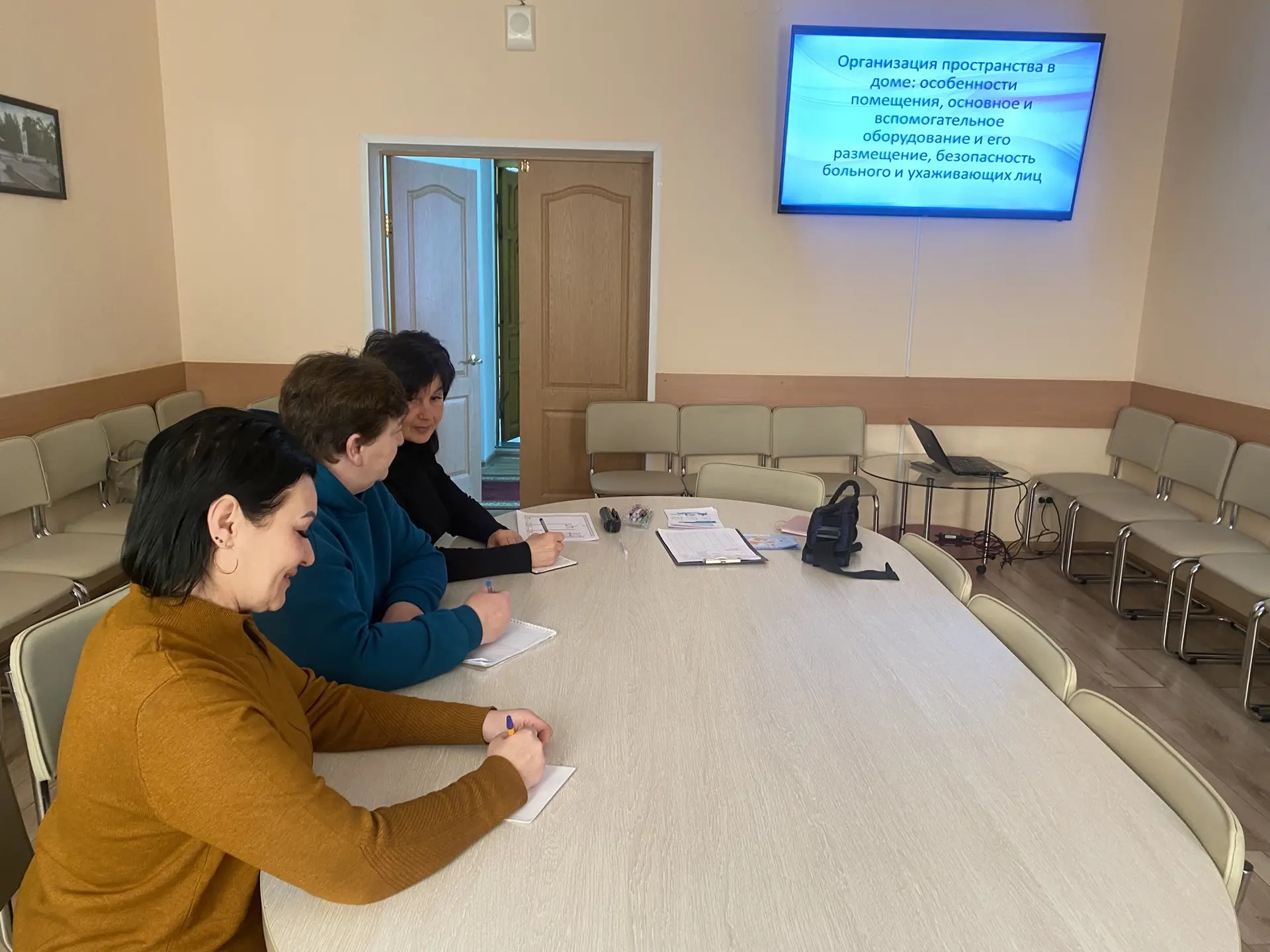 В рамках социальной технологии «Школа ухода» преподавателем Шувакиной Л.В. проведено обучающее занятие для социальных работников и помощников по уходу на тему: «Организация пространства в доме: особенности помещения, вспомогательное оборудование и его размещение, безопасность больного и ухаживающих лиц».