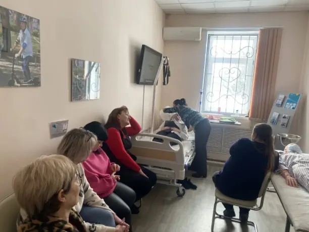 Участники занятия просмотрели обучающие видео и отработали на практике алгоритмы по правильному мытью головы с помощью специальной ванночки и перемещение вверх (при сползании) и к краю кровати с помощью скользящих простыней, а также пересаживание с помощью пояса. Также на занятии рассмотрены вопросы правильного безболезненного проведения общегигиенических процедур с использованием средств реабилитации, смены постельного белья. Обучающая встреча прошла продуктивно и плодотворно. В завершении преподаватель ответил на интересующие вопросы, которые задавали присутствующие.