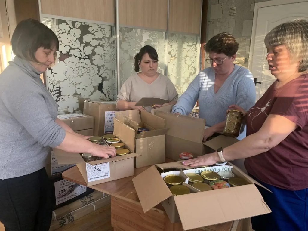 Социальные работники комплексного центра социального обслуживания населения Ртищевского района, члены Совета женщин п. Луч и п. Таптулино собрали гуманитарную помощь для отправки «за ленточку» весом 120 килограммов.